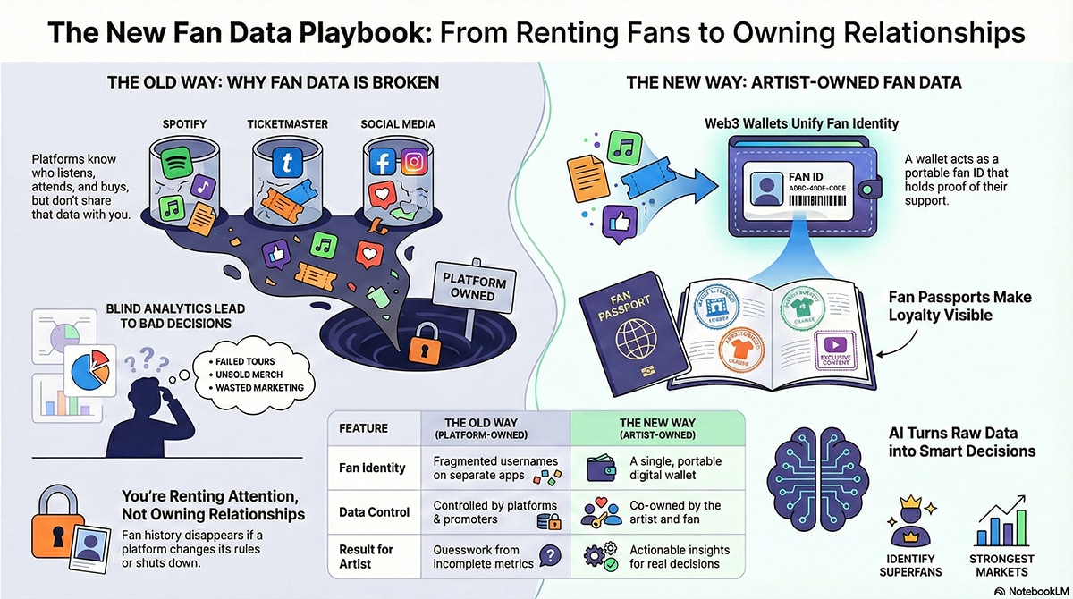 For decades, fans have been tracked, sorted, scored, and monetized. Streams get counted. Tickets get scanned. Emails get opened. Merch gets shipped. But almost all of that information disappears into platforms, promoters, labels, and tech companies that sit between artists and the people who actually support them.