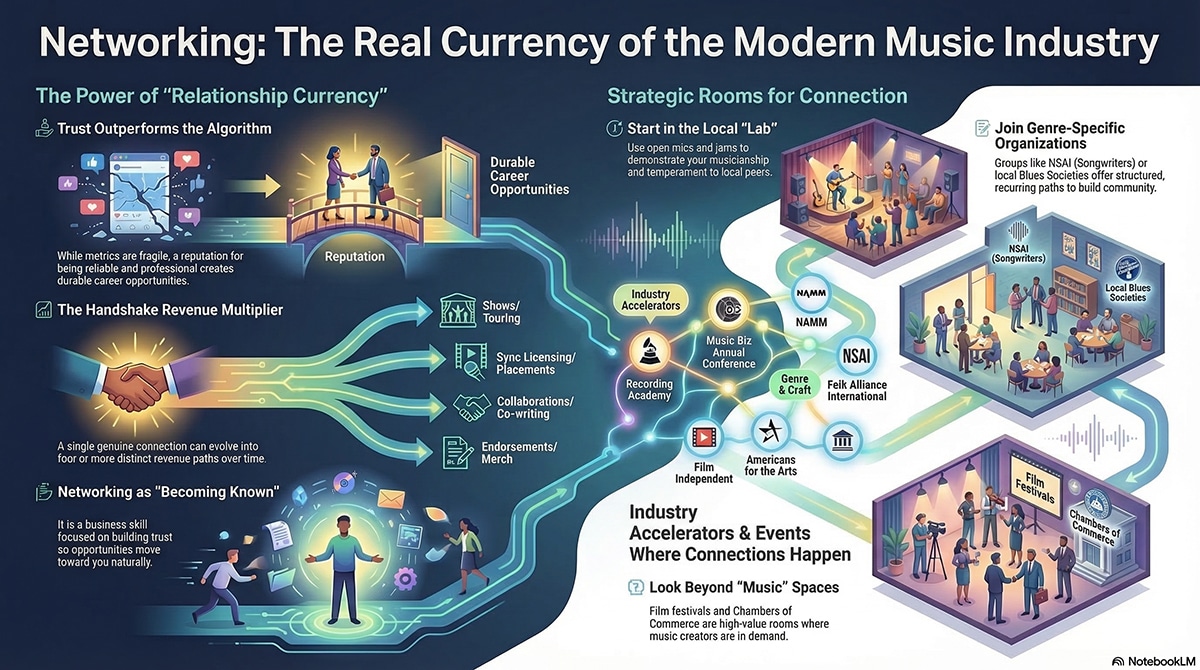 A lot of musicians hate the word “networking” because it sounds fake. It sounds like a bad suit. It sounds like a person who talks too long at a conference and never asks a real question. It sounds like the kind of industry behavior that makes artists want to go home early.
