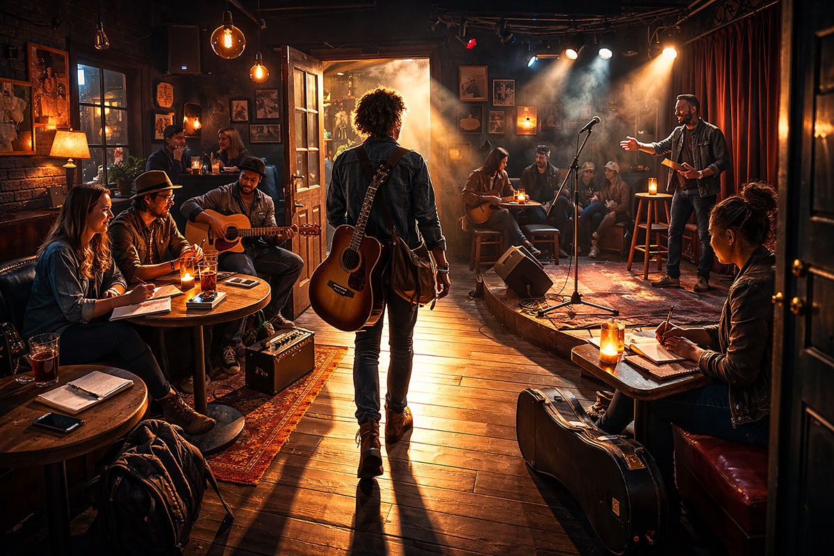 An open mic is not just a stage. It is a scouting room. It is a low-risk place for other musicians, bookers, hosts, and venue staff to notice you. It is also where you can notice them. A lot of careers begin when somebody sees how you handle a small room with no glamour and no excuses.