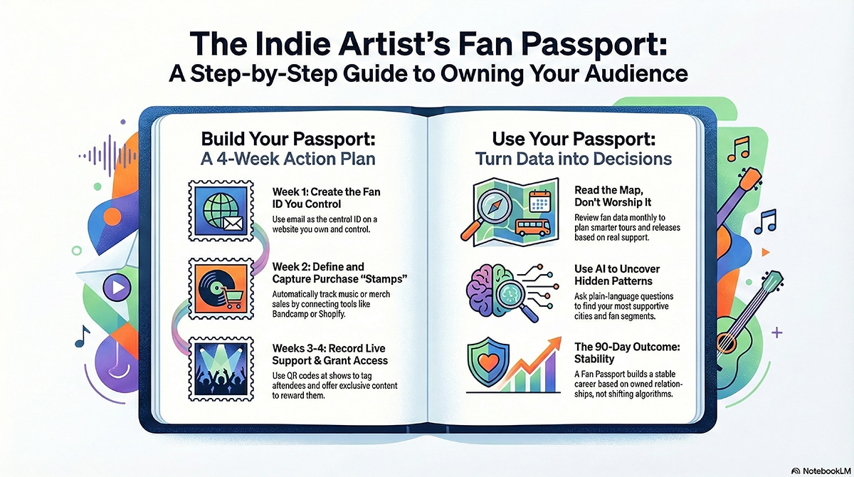A Fan Passport does not replace streaming, social media, or platforms like Bandcamp. It sits above them. It turns scattered moments into a coherent story about your audience. You do not need custom software. You do not need to move fast. You need intention. Once you start treating fan interactions as something worth remembering, everything else starts to change.