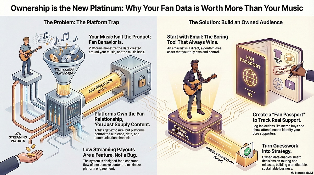 If owning fan data is so powerful, a fair question follows. Why is it so rarely encouraged by the platforms artists depend on? The answer is simple. Owning fan data weakens platform control.